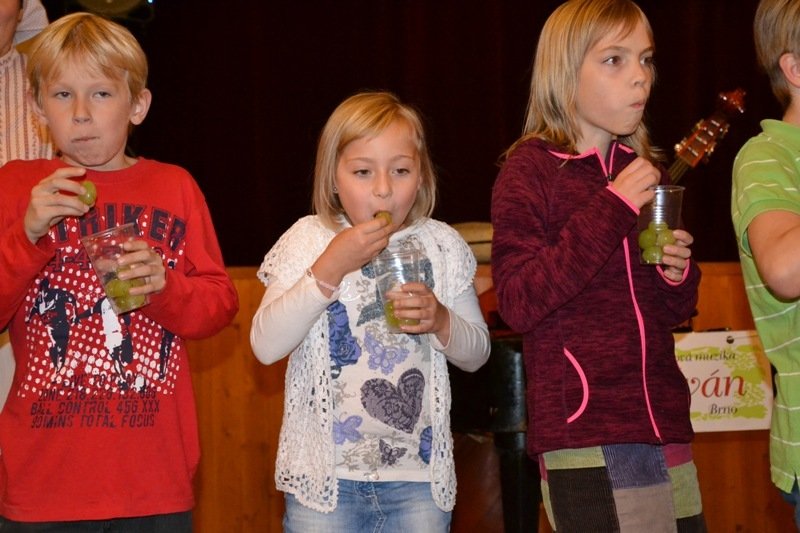 K tanci a poslechu hrála cimbálová muzika Sylván a vystoupil folklorní soubor Šafrán. Během večera nás členky kroužku Mladý zdravotník potěšily svým tanečním číslem. Letošní rok jsme si mimo vína z Dolních Bojanovic od vinaře Fery Kuběny pochutnali i na burčáku. Děti si zasoutěžily v rychlosti pojídání bobulí a dospělí v natahování koštýře. Věříme, že se vám večer líbil, a budeme se těšit na další rok.