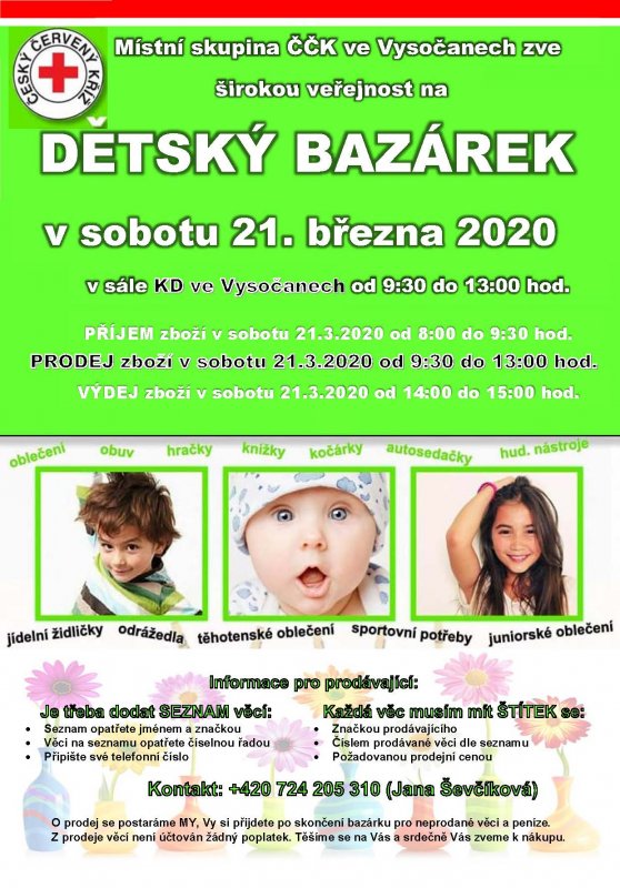Zveme širokou veřejnost na DĚTSKÝ BAZÁREK - jaro/léto 2020, který se uskuteční v sále kulturního domu ve Vysočanech.