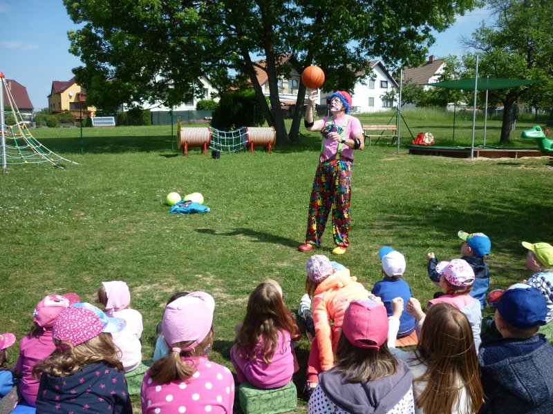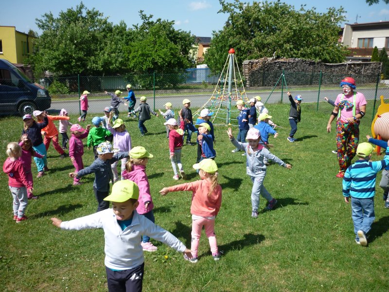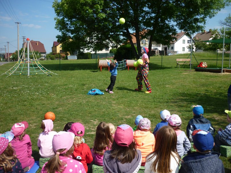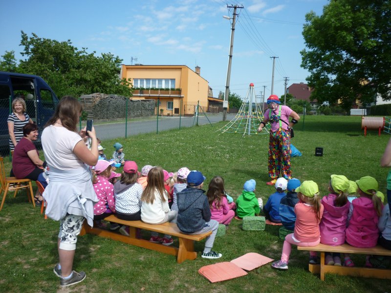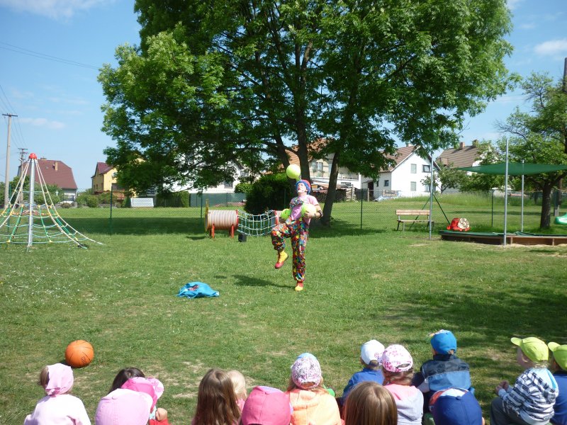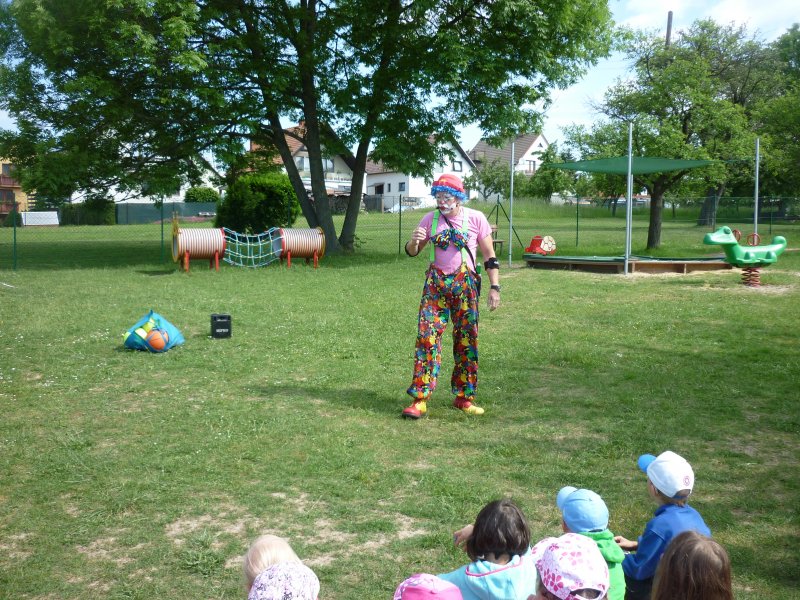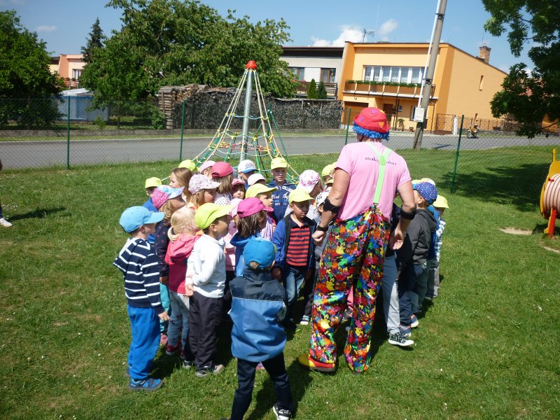 Mezi oblíbené akce v MŠ patří představení klauna. V letošním roce za námi přijel klaun z Klaunova. Počasí nám přálo - představení se konalo na hřišti. Přijeli za námi i kamarádi z MŠ ze Šošůvky. Představení a hry s Klaunem se všem líbily. Děti aktivně spolupracovaly a všichni jsme se pobavili.