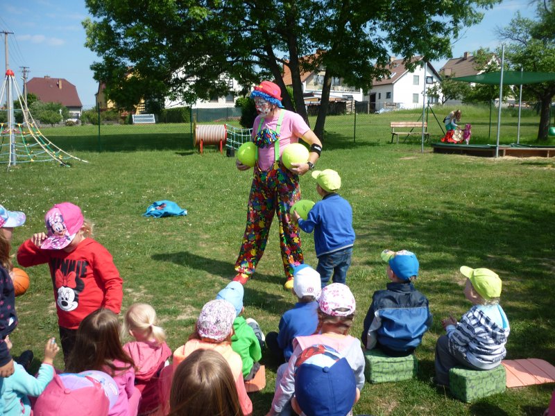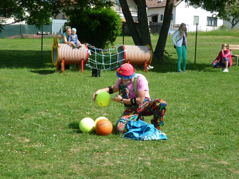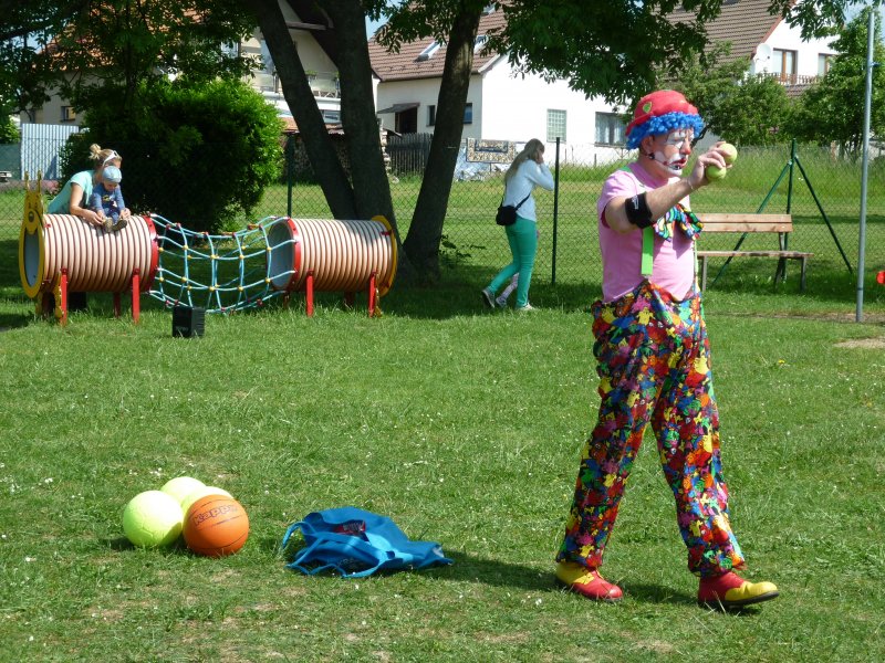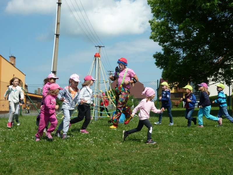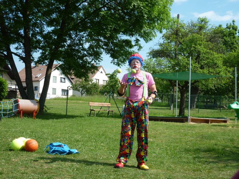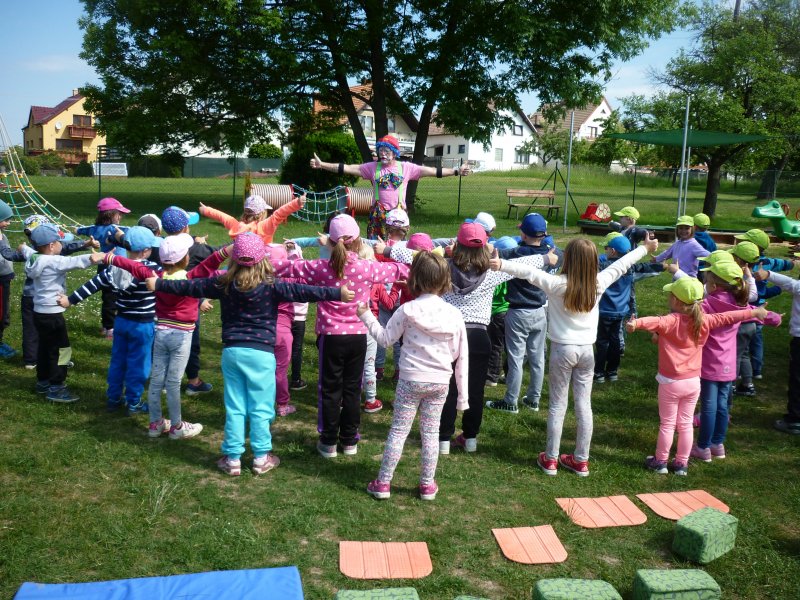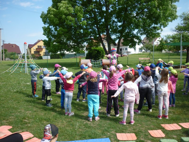 Mezi oblíbené akce v MŠ patří představení klauna. V letošním roce za námi přijel klaun z Klaunova. Počasí nám přálo - představení se konalo na hřišti. Přijeli za námi i kamarádi z MŠ ze Šošůvky. Představení a hry s Klaunem se všem líbily. Děti aktivně spolupracovaly a všichni jsme se pobavili.