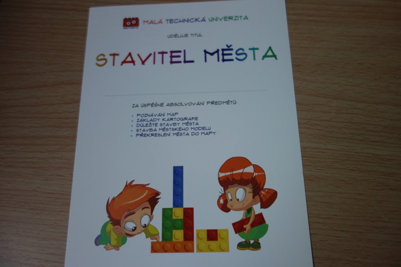 30. září děti získaly „titul“ STAVITEL MĚSTA za úspěšné absolvování předmětů - poznávání map, základy kartografie, důležité stavby města, stavba městského modelu a překreslení města do mapy.