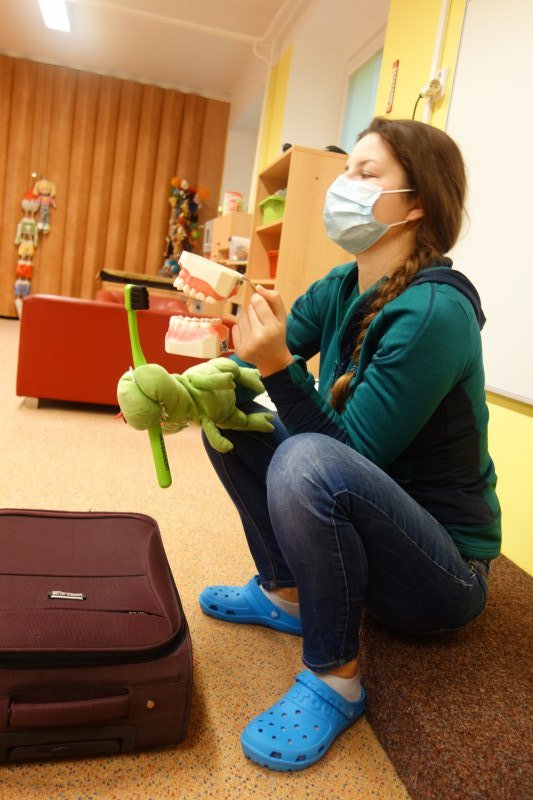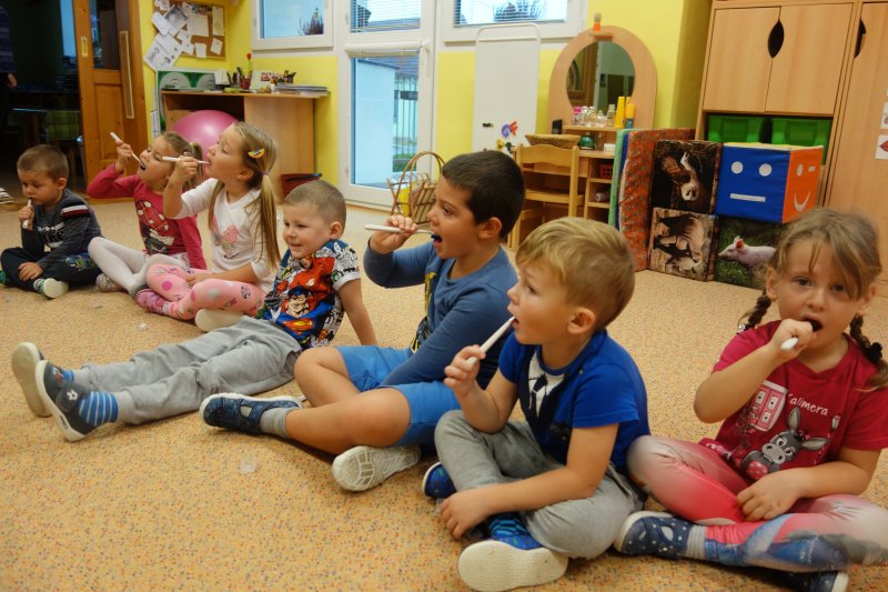 Projekt „Dětský úsměv“, který nám přerušilo jarní uzavření MŠ, pokračuje v tomto školním roce. V úterý 27.10.2020 nás opět navštívila „zoubková víla“ se svým kamarádem krokodýlem. Společně jsme si zopakovali, jak má vypadat správný kartáček, techniku čištění zubů, kartáček jsme umyli a uložili. Na závěr si děti se zoubkovou vílou protáhly svaly. Těšíme se na další setkání.