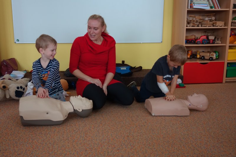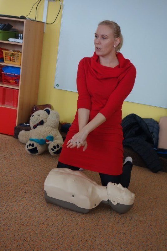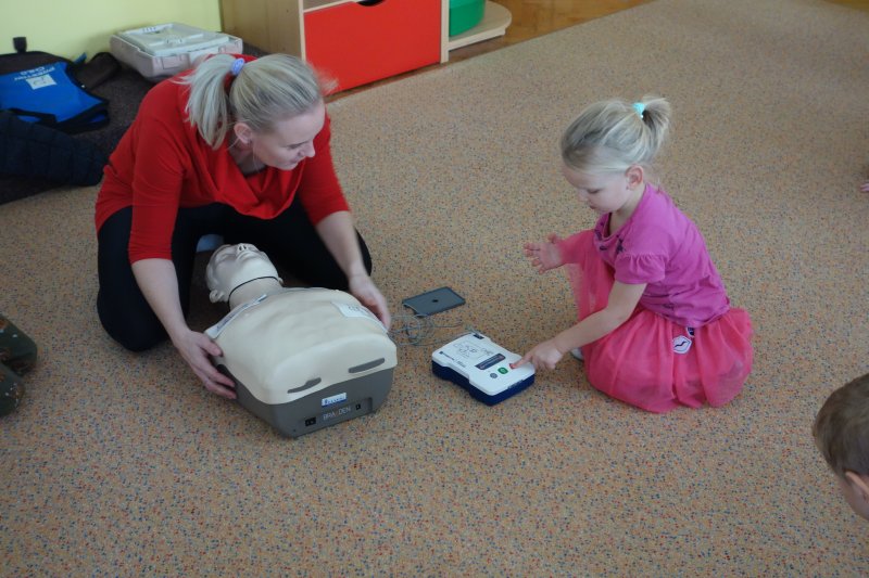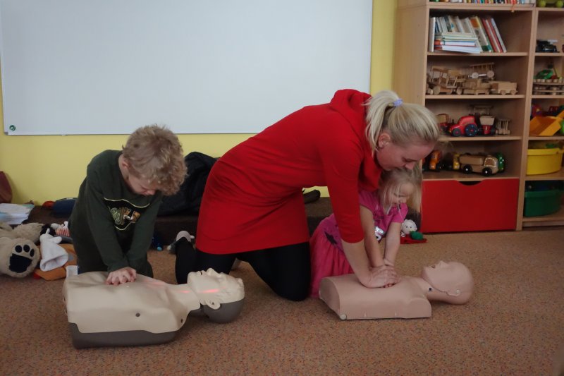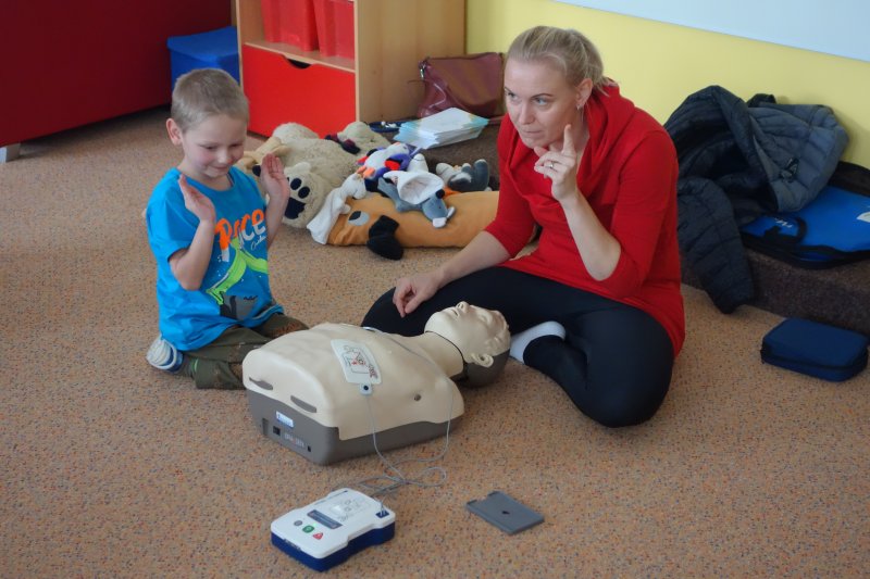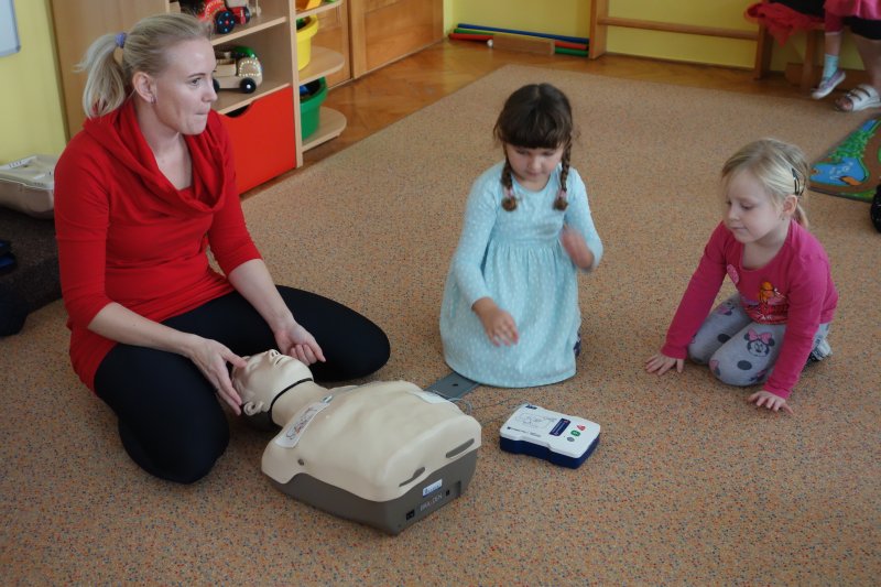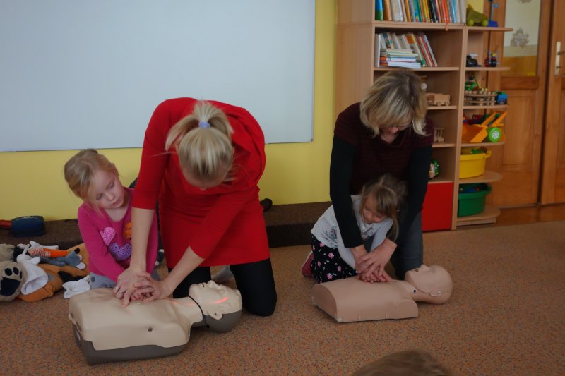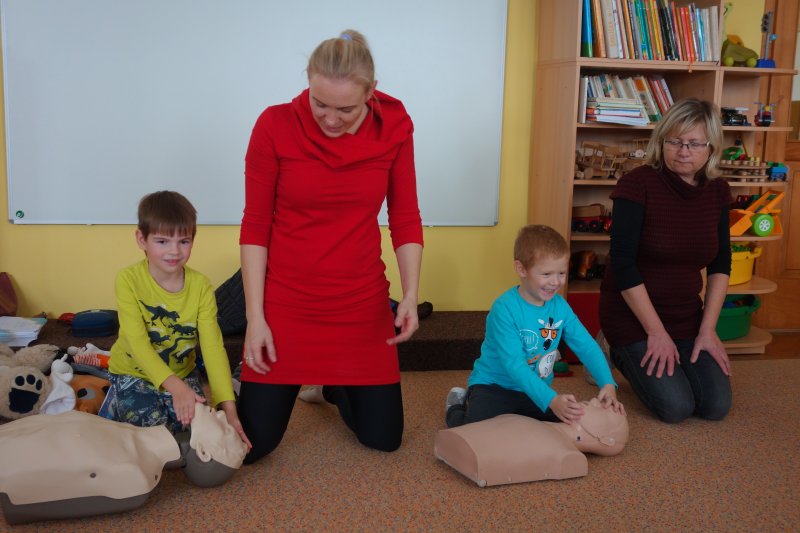 Druhá část projektového dne byla pro děti nejzajímavější, jelikož se nejprve na vlastním plyšákovi naučily jednotlivé postupy kardiopulmonální resuscitace s ohledem na věk dětí a posléze po úspěšném resuscitování vlastního plyšového kamaráda si vyzkoušeli resuscitaci na KPR figuríně.