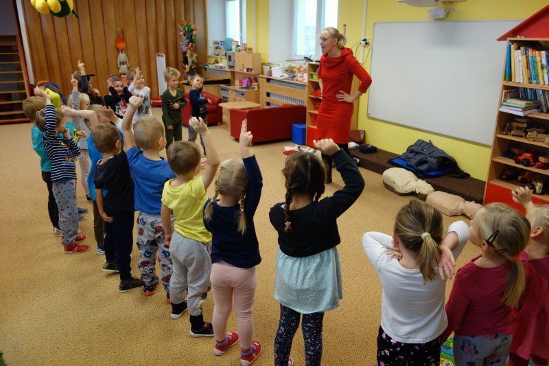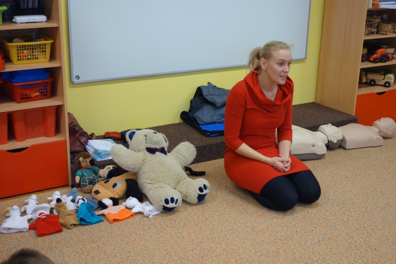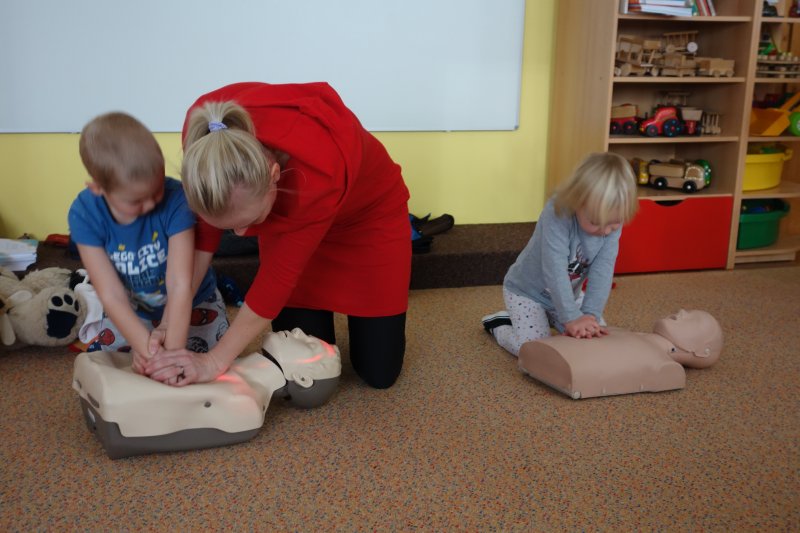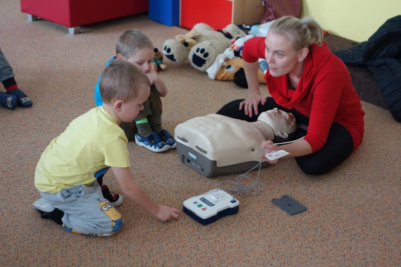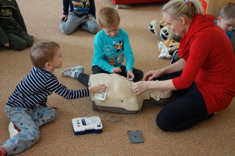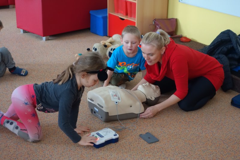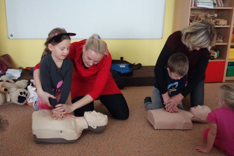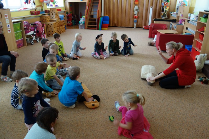 Druhá část projektového dne byla pro děti nejzajímavější, jelikož se nejprve na vlastním plyšákovi naučily jednotlivé postupy kardiopulmonální resuscitace s ohledem na věk dětí a posléze po úspěšném resuscitování vlastního plyšového kamaráda si vyzkoušeli resuscitaci na KPR figuríně.