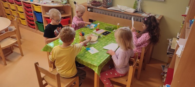Ve školce jsme se na tento svátek připravovali celý týden. Tvořili jsme, zpívali, povídali si o svatém Martinovi, projížděli se na papírových koníčcích po vesnici a dokonce jsme pekli svatomartinské rohlíčky.