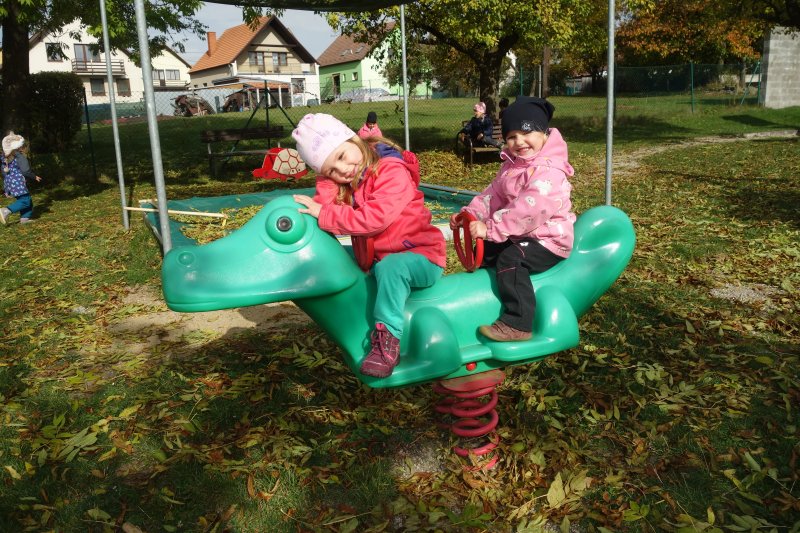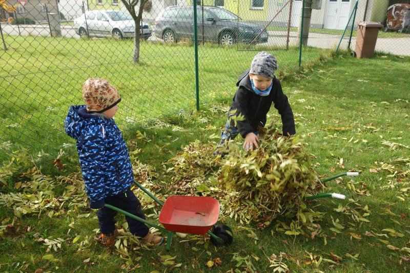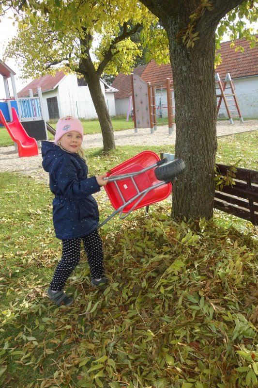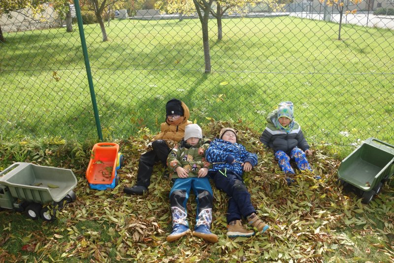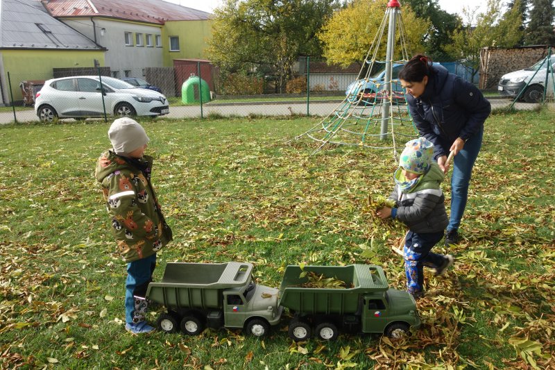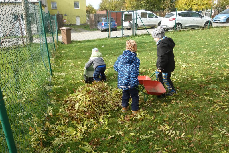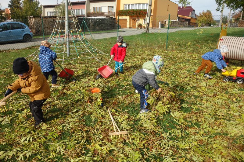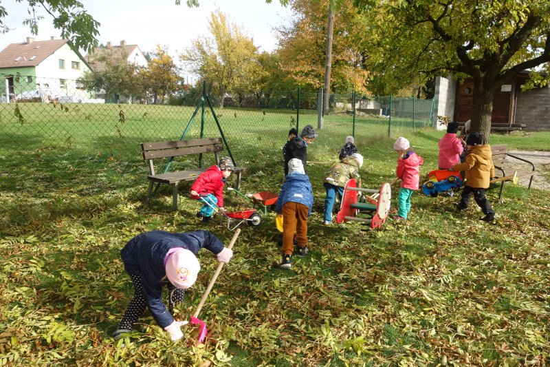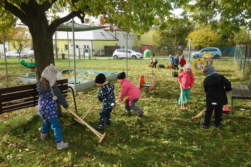 Na školní zahradě si nejen hrajeme, ale také pomáháme – při hrabání listí zažíváme spoustu zábavy, radost z prohybu na čerstvém vzduchu a rozvíjíme své pohybové dovednosti a učíme se pečovat o naše okolí.