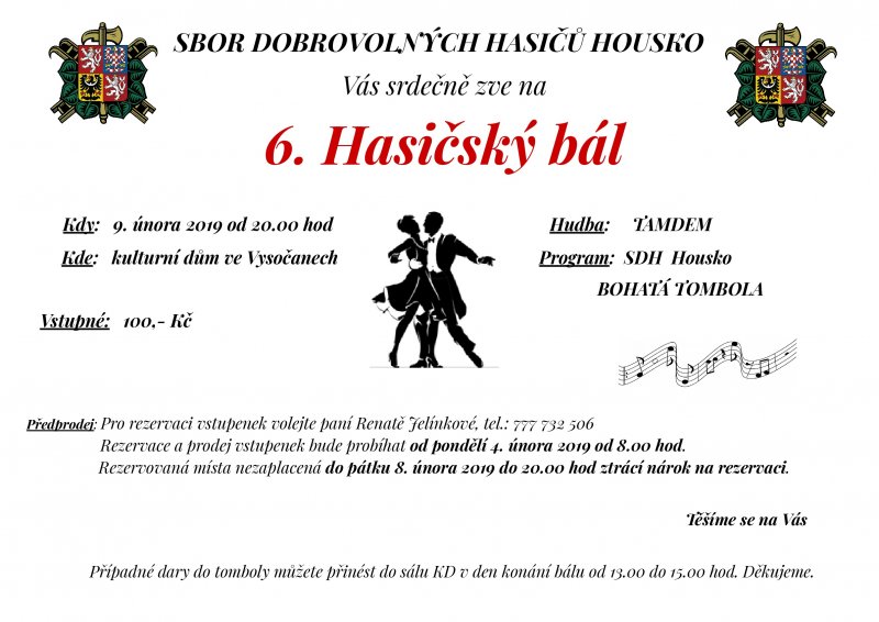 Sbor dobrovolných hasičů Housko Vás srdečně zve na