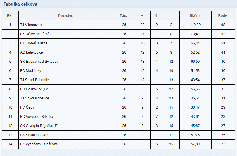 Poslední zápas letošní sezóny a minimálně na rok i poslední v krajské soutěži, sehráli naši fotbalisté v Bohdalicích. Mizivá návštěva byla svědkem zápasu, který tak nějak symbolizoval naše působení v celém ročníku. Opět jsme dostávali laciné branky a naopak sami svoje možnosti „pálili“. Po úvodním dějství, kdy jsme prakticky vůbec neohrozili branku domácích, jsme v průběhu druhé půle 2x ztráceli tři branky, ale přesto jsme si vypracovali dostatek „tutovek“ na obrat. Když se zkrátka nedaří, tak se nedaří, i když znám i jadrnější přirovnání.